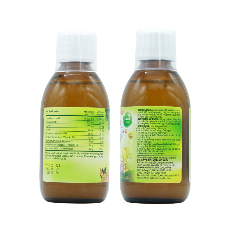 • Công dụng: Bổ sung Lysine, Kẽm và Vitamin cho cơ thể, giúp bé ăn ngon miệng, hỗ trợ tăng cường hấp thu các chất dinh dưỡng.